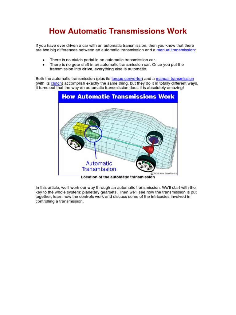 This Essay Is About How Automatic Transmission Works Automatic Transmissions Have All The Features Of Manual Transmissions And A Lot More Happy Reading Writework